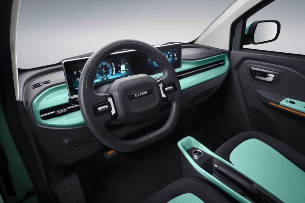 תא הנוסעים כולל שני מקומות ישיבה, צמד מסכי תצוגה דיגיטליים שמתמזגים לאחד וחיבור בלוטוס ו-USB. תא המטען מפתיע בגודלו, עם נפח מוצהר של 750 ליטרים ועם אורך של 315 ס"מ ורוחב של 150 ס"מ בלבד, מדובר בפתרון המושלם למי שסובל ממצוקת חנייה.