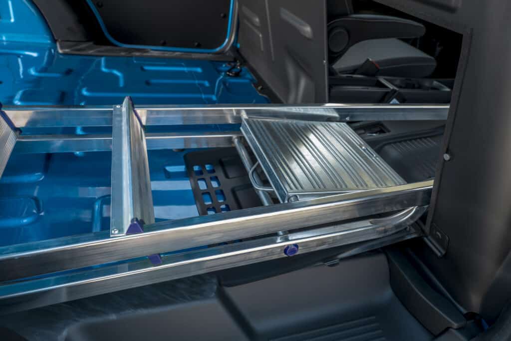 בתהליך התכנון של הקורייר החשמלי, שמו בפורד את הדגש על רכב שיהיה כמה שיותר יעיל וש"יעבוד" בעבור הנהג, וזה יוכל להתנהל בצורה כמה שיותר זורמת כדי לעשות את עבודתו על הצד הטוב ביותר. כמו לדוגמא הפתח שאתם יכולים לראות בתמונות, שמאפשר, על ידי קיפול של המושב האחורי, לשנע בצורה בטוחה עם דלתות אחוריות סגורות גם עצמים ארוכים כמו צינורות ברזל, סולם ועוד, "שאקלים" מובנים המשמשים לאבטחת הציוד ברכב, הגה Squircle – שילוב של צורה ריבועית ועגולה שאמור על פי פורד לשפר את המרווח לרגליים וגם את ראות הכביש, ואפילו "חבילת משרד" שכוללת משטח עבודה עם תאורה מובנית, מתקפל.