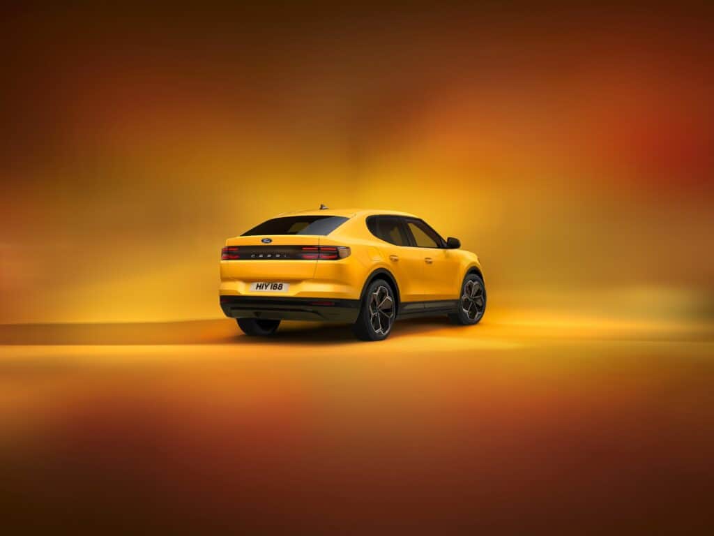 מבט צד על פורד קפרי EV המזכיר בצורתו ועיצובו את פולקסווגן ID.5
