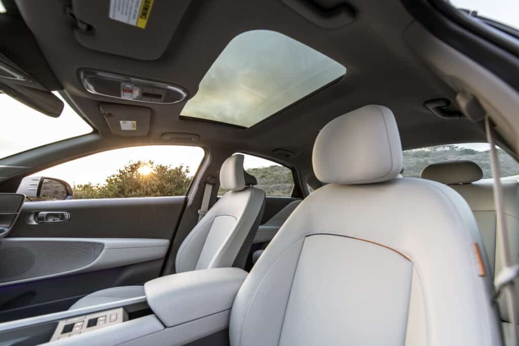 אחד היתרונות של פלטפורמת ה-E-GMP של יונדאי היא בסיס הגלגלים הגדול שהיא מאפשרת. לאיוניק 6 בסיס גלגלים של רחב מאוד של 2,950 מ״מ, קצר במעט מזו של האיוניק 5 (3,000 מ״מ), וארוך במעט מזו של המודל 3 (2,875 מ״מ). יחד עם העובדה שאין תעלת הינע שחוצה את הרכב מאחור, מדובר על רכב מרווח מאוד ביחס לקטגוריה.