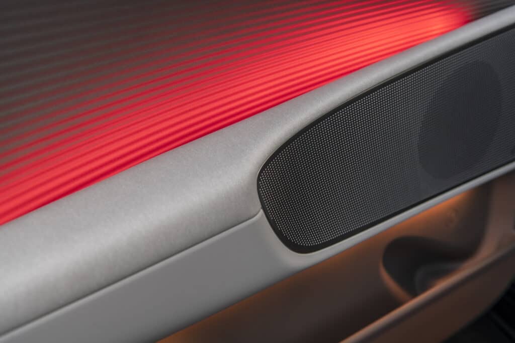 פנים הרכב ומערכת המולטימדיה משדרים חדשנות מצד אחד, אך עמוסים בכפתורים ביחס לרכבים חשמליים אחרים. שני מסכים של 12 אינטש נמתחים ממרכז הרכב אל הנהג, אחד משמש כלוח מחוונים, והשני כמסך של מערכת המולטימדיה.