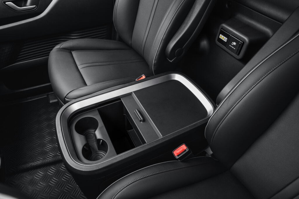 הקבינה של האיווקו eMoovy כוללת מסך תצוגה 10.25 אינטש ועוד מגוון פיצ'רים בטיחותיים ועזרים מתקדמים לנהג כמו אפליקציית ניווט מובנית, שליטה על נעילת הרכב ועל הטמפרטורה דרך הטלפון החכם, התראת התנגשות ומערכת עזר לשמירה על נתיב ועוד. האבזור הפנימי והעיצוב החיצוני של האיווקו eMoovy שואבים השראה במידה רבה מהסטאריה, המיניוואן הלא חשמלי של יונדאי.