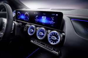 פנים הרכב של ה-EQA החשמלית עם מסך מגע רחב