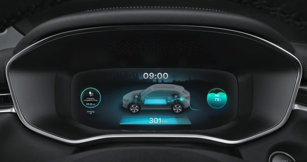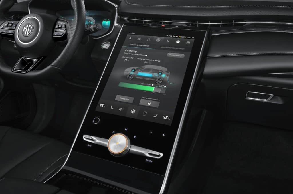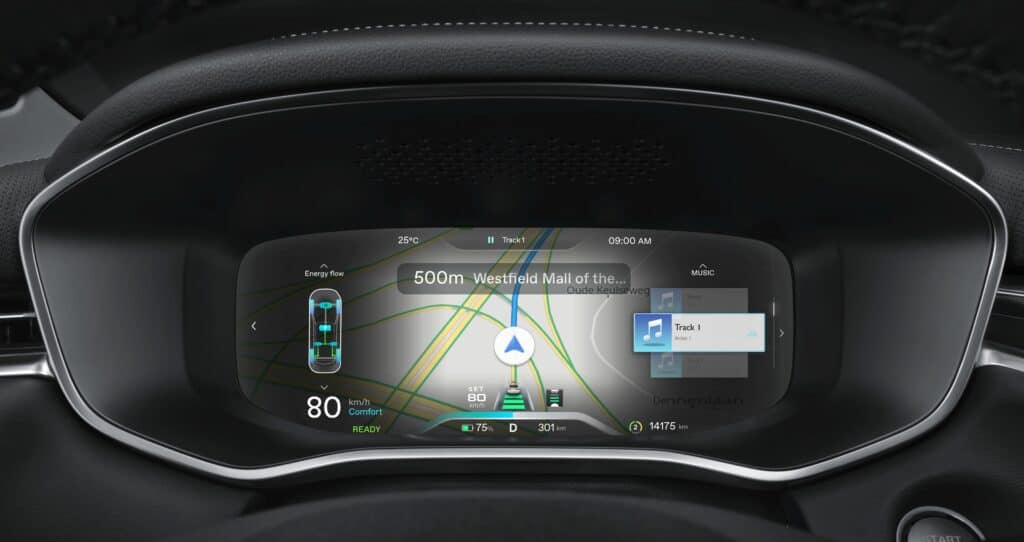פנים הרכב יחסית מינימליסטי, ולמעט כפתורים על ההגה, אין כמעט כפתורים פיזיים, ורוב השליטה מתבצעת דרך מערכת המולטימדיה. לרשות הנהג לוח מחוונים דיגיטלי גדול, ומסך מולטימדיה משופע בגודל של 19 אינטש, מתחתיו נמצא בורר מצבי הנהיגה. מערכת המולטימדיה תומכת באפל קארפליי ואנדרואיד אוטו.