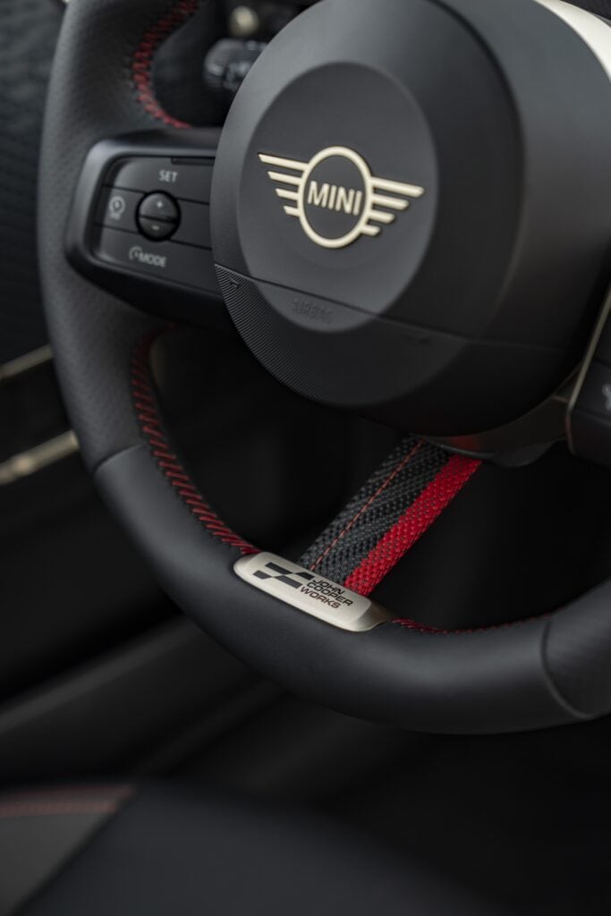גם גרסאות ה-JCW החשמליות של מיני קופר, כמו מקביליהם הבנזינאים, מגיעים עם מסך התצוגה העגול והמגניב שבתא הנהג שמציג עיצוב מחומרים שעושים רושם סופר-איכותי. דגמי ה-JCW החשמליים החדשים של מיני קופר מקבלים גם בלמים משודרגים שצבועים באדום אבל זה משהו שיהיה ממש קשה לשים אליו לב בלי לדעת מה בדיוק מחפשים.