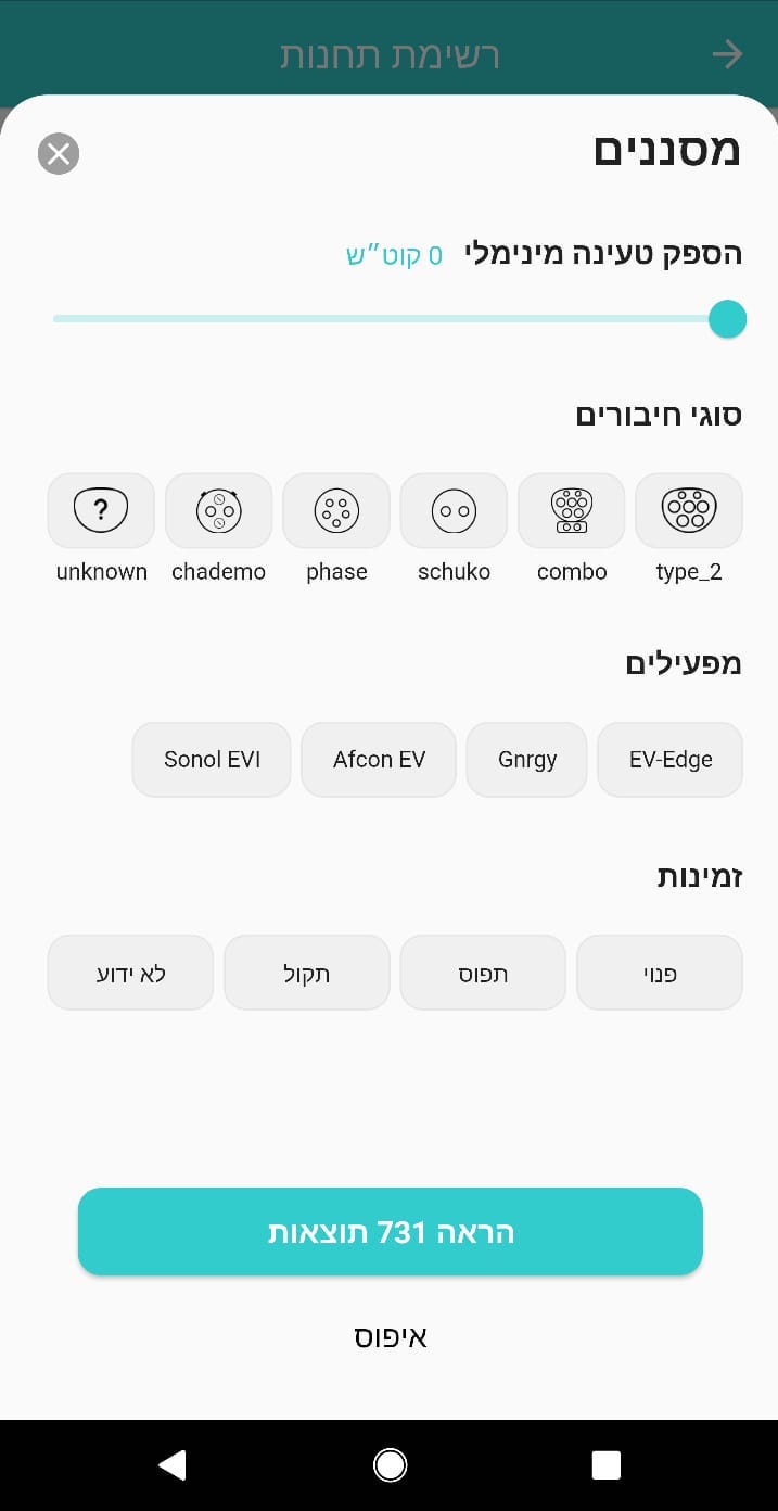 נראה שגם המסננים של האפליקציה דורשים עדכון, בין היתר ניתן לסנן לפי זמינות העמדות, שם תוכלו לבחור בין ״פנוי״, ״תפוס״, ״תקול״ ו-״לא ידוע״.
