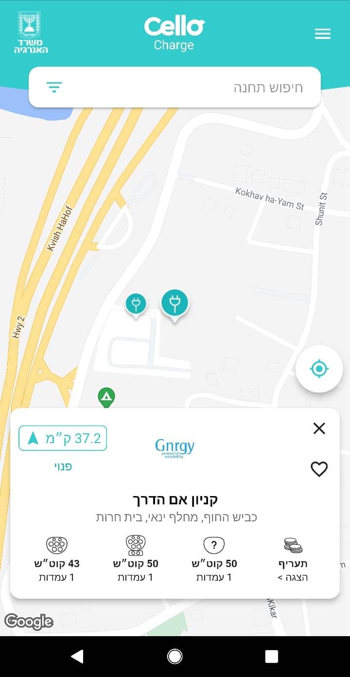 בנוסף האפליקציה מאפשרת לבחור בין ארבעה מפעילי עמדות טעינה בישראל – Gnrgy, EV Edge, אפקון וסונול EVI.