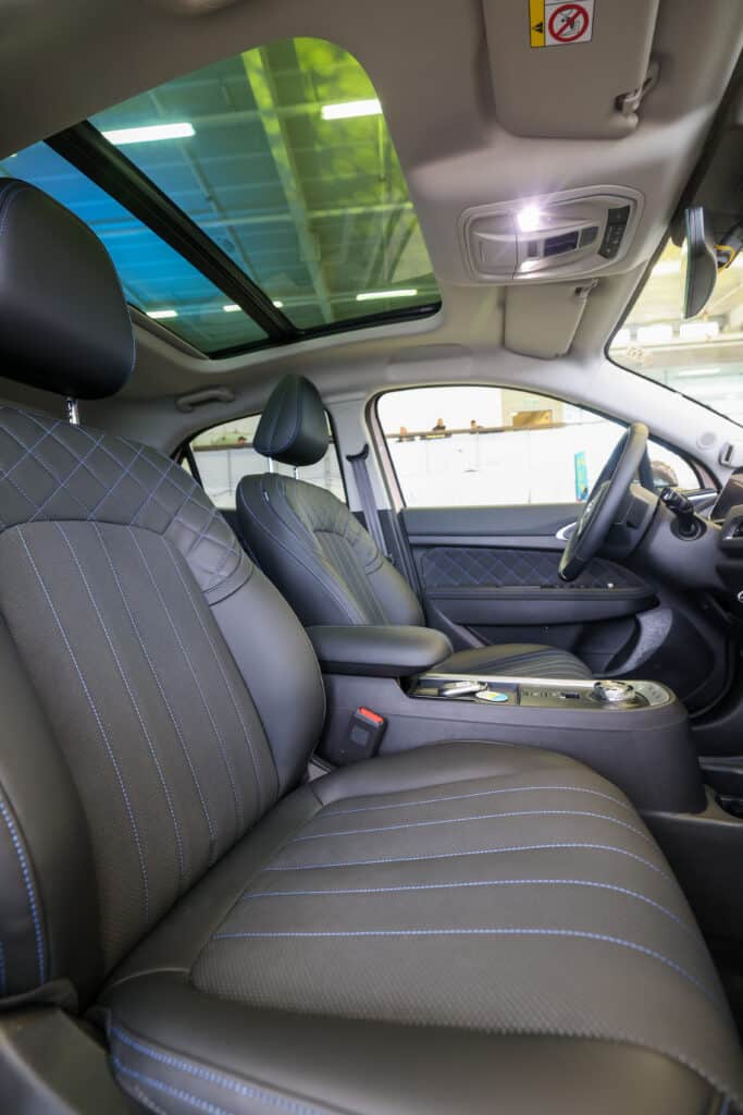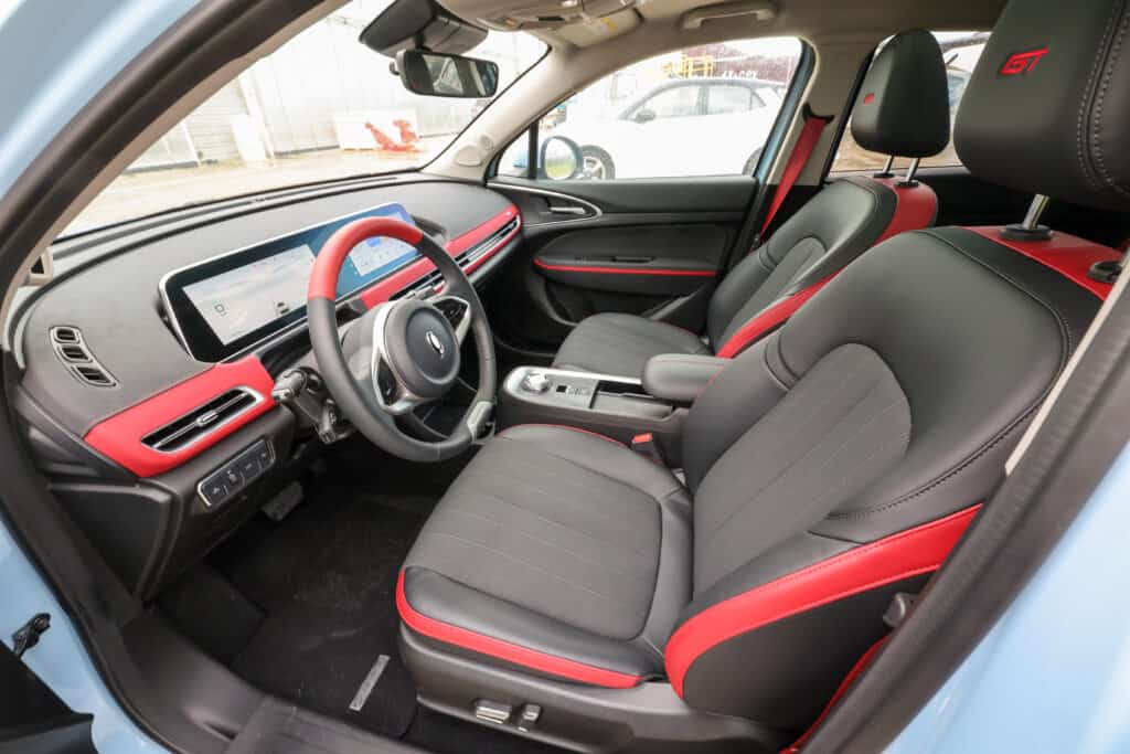 פנים הרכב נקי מאוד מבחינה עיצובית – הרכב לא עמוס במתגים וחוגות, ורוב השליטה עליו מתבצעת ממערכת המולטימדיה, הכוללת שני מסכי 10.25 אינטש. המושבים מרופדים בעור טבעוני, ותומכים בכוונון חשמלי (מושבים קדמיים). ברמות הגימור הגבוהות תקבלו גם חימום למושבים ועיסוי בכסא הנהג.