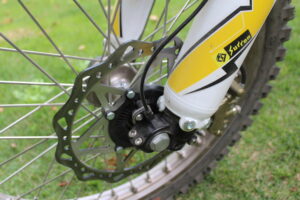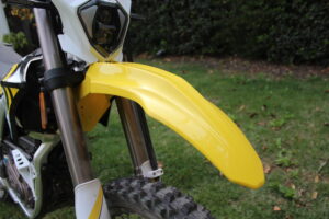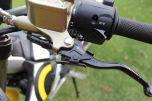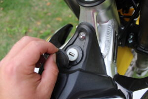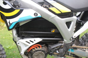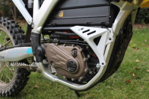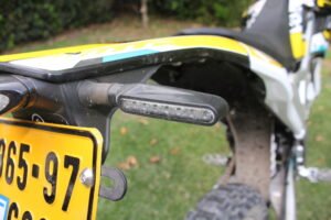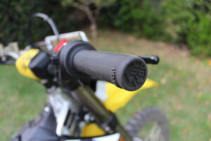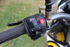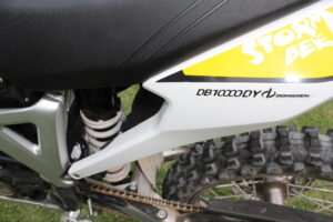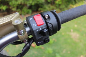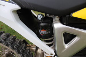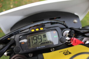 הרגל מונפת בקלילות מעבר אל מושב הסורון ואנחנו קולטים מיד שמדובר בכלי אידיאלי למתחילים – לא מאיים בשום צורה ומאפשר לך להגיע עם שתי רגליים בטוחות אל הקרקע. המתגים נראים פלסטיקיים משהו ובגדול לא משדרים איכות יותר מידי גבוהה אבל זה לא באמת משנה כל כך – מדובר באופנוע אנדורו חשמלי ואנחנו רוצים לדעת איך זה לרכב עליו.